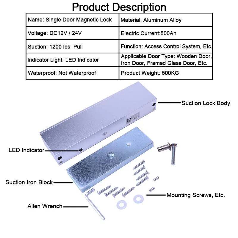Addition Information of Eseye Magnetic Lock 12v Door Lock 500KG (1200lbs) For Door Access Control System Holding Force High